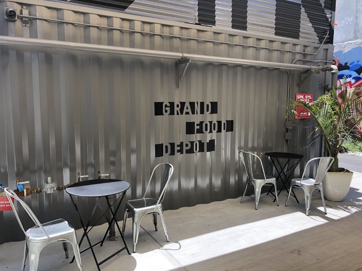 About four years ago, CloudKitchens co-founder Diego Berdakin purchased a 22,000sqft parking lot adjacent to the University of Southern California in South Central, Los Angeles for $420,000. According to The Information, CloudKitchens has since hired a team of 50 engineers to repurpose shipping containers into ghost kitchens and signed a $25mm contract to purchase them from Brooklyn-based SG Blocks, a publicly traded prefab company whose containers can be found everywhere from Starbucks drive-thrus to private residences in the Hamptons. CloudKitchens eventually canceled its contract and two CloudKitchens engineers leading the team recently quit. Today, the startup’s first modular site is now live as Grand Food Depot, what appears to be home to a future drive-thru concept featuring 17 separate storefront kitchens housed in three separate shipping containers.