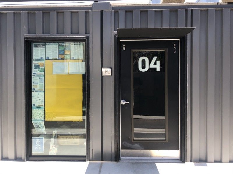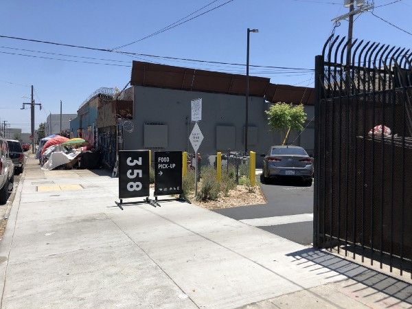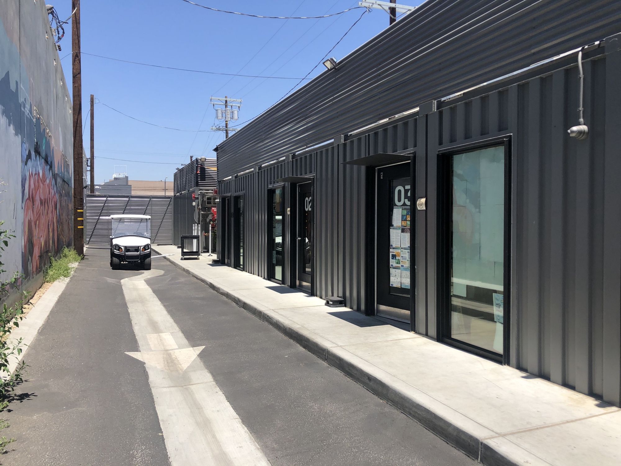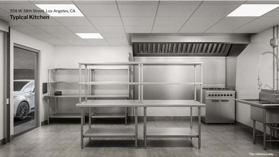 The 40-foot-wide alley spans an entire city block and cost about $1.5mm to build out, according to permits filed with the City of Los Angeles. There are five buildings in total: three 1,400–1,700sqft kitchen containers, a reception/pickup area for delivery drivers, and a small storage area. There is a long, narrow road that spans the entire lot that is currently blocked by a gate but is planned to eventually be used as a drive-thru that would allow consumers to drive directly up to a kitchen to pick up their food. CloudKitchens staff currently use golf carts to shuttle food from each kitchen to the reception area, where delivery drivers can pick up orders. However, renderings depict foot and car traffic accessing the kitchens as storefronts. Unlike its other locations, the company has outfitted each kitchen with brand new equipment. Tenants include Tako Poke+Ramen, EatzThai, Honey’s Kettle Fried Chicken, Brady’s Bakery, and Umami Burger.