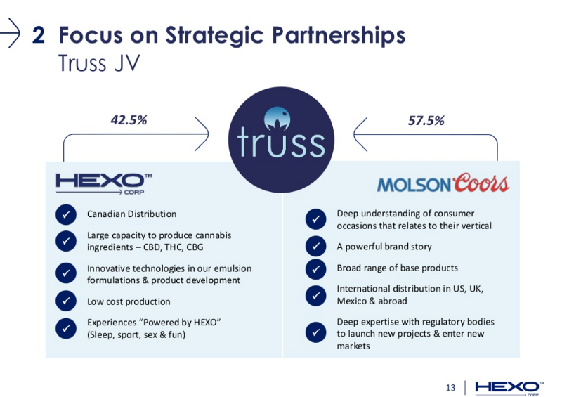 “We believe cannabis-based beverages can be tailored to meet specific outcomes across a variety of consumption occasions, while avoiding such things as weight gain, “hangover” effects, and interactions with traditional pharmaceutical medications. Given this, cannabis-based beverages could serve as a disruptive alternative to traditional alcohol beverages.”