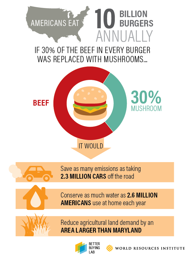 Americans consume ~252 million pounds of pepperoni and ~2.3 billion chicken nuggets annually. According to the World Resources Institute, if we replaced 30% of the beef found in the 10 billion conventional burgers consumed each year in the US with a natural product like Rhiza, we could save the equivalent of emissions from 2.3 million cars, water from 2.6 million Americans, and the agricultural land footprint larger than the state of Maryland.