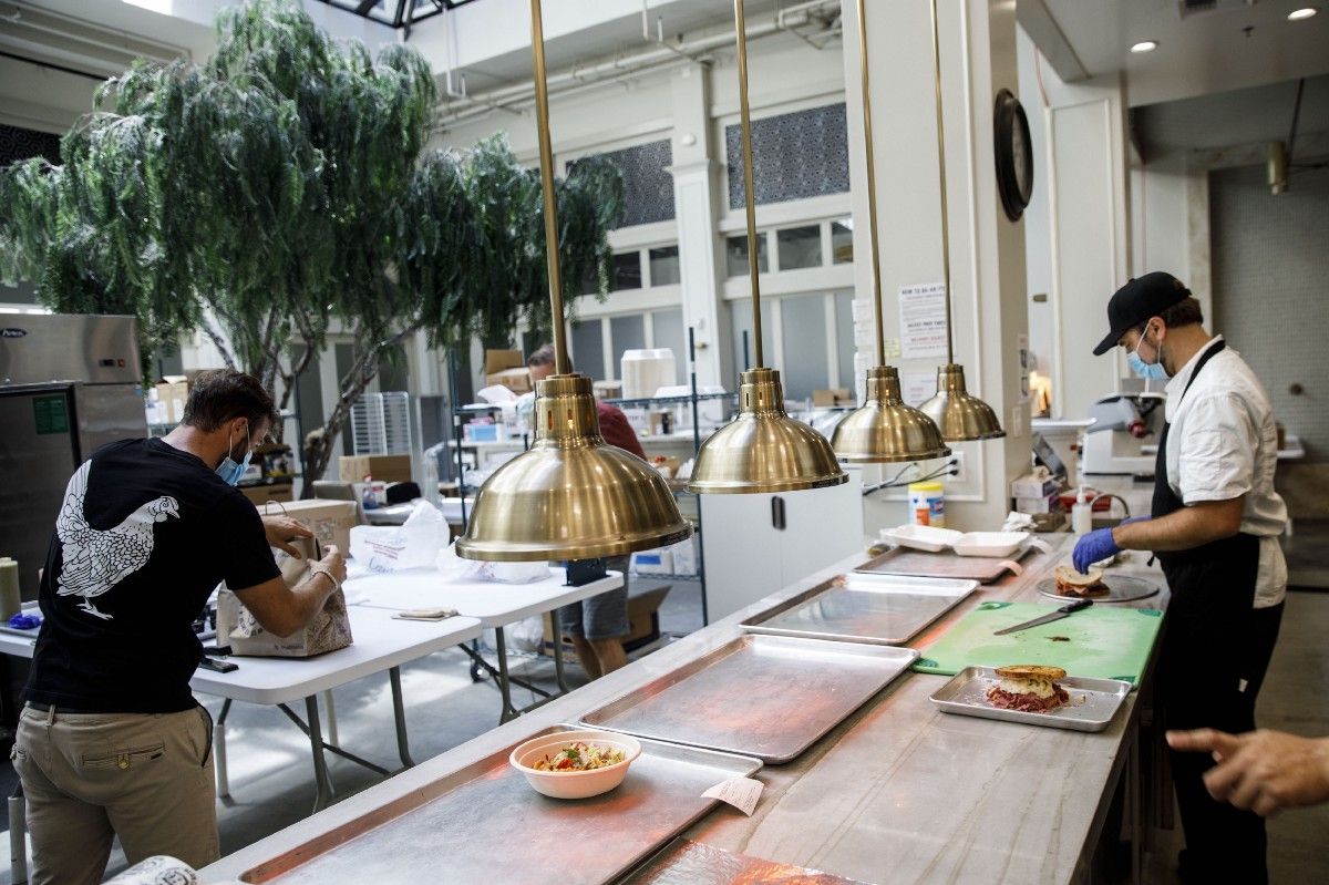 When it comes to ghost kitchen models there are real estate plays like CloudKitchens on one side, pure-play subleased facilities like Kitchen United and DoorDash Kitchens in the middle, and asset-light franchise models on the other. Postmates is making its debut into the space using the latter strategy as it puts together a three-way partnership between top performing restaurant brands, caterers, and its marketplace. It’s not your typical idea of a ghost kitchen–– all licensed brands are prepared from a single kitchen housed in a former French fine dining restaurant in a historic loft building fully equipped with a skylight atrium and marble countertops. The site is located around the corner from Grand Central Market in Downtown LA and launched on July 24th with Canter’s Deli, followed by Trejo’s Tacos and Dialog Cafe over the subsequent weeks. By the end of the quarter, the kitchen expects to house 5–6 brands under a “virtual food hall” concept where customers can order from multiple restaurants on a single menu. The operation is gaining traction with nearby residents despite being located in a commercial zone that’s witnessing a decrease in workers. Postmates marketing materials promote a delivery radius spanning north to Echo Park all the way south to South Central, where it will compete with CloudKitchens’ drive-thru shipping containers.