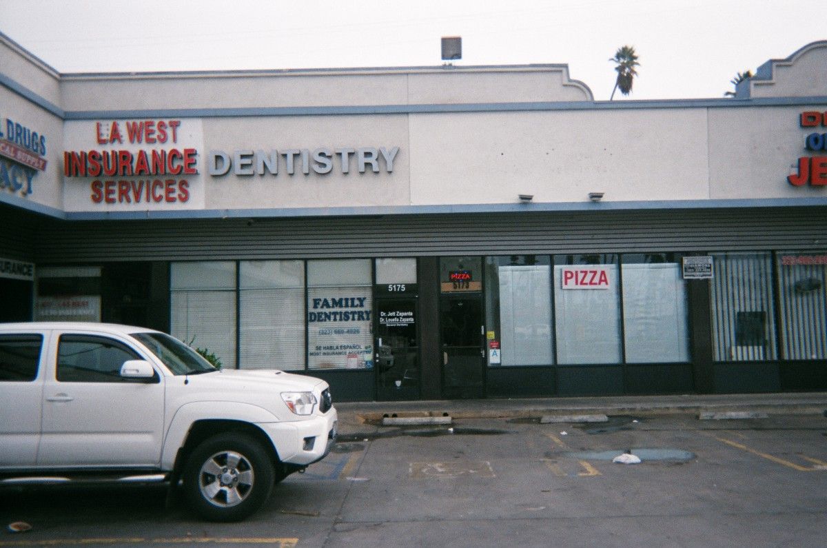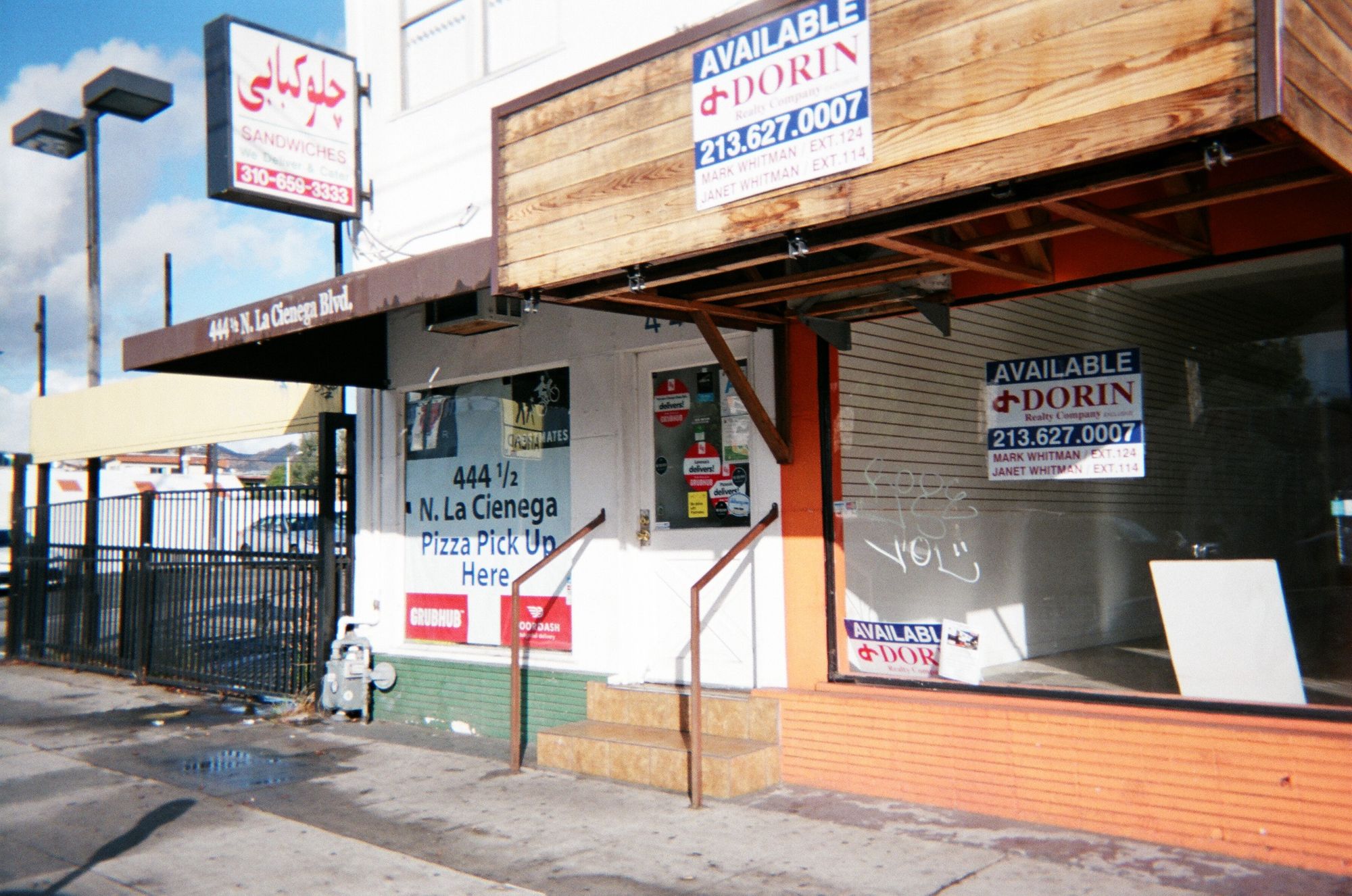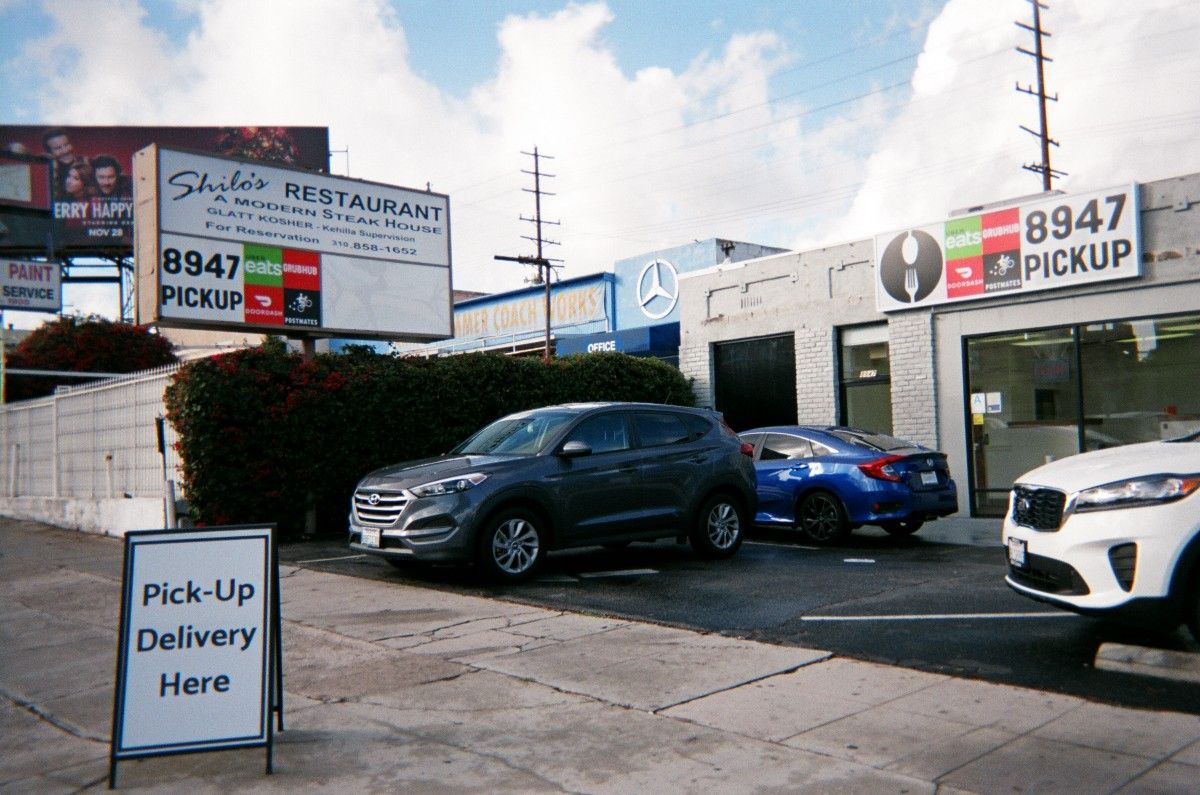 The first key detail that stands out is each store’s signage, optimized to catch the eye of delivery drivers. Similar to CloudKitchens’ main facilities, these satellites feature large block lettering with the street number and the word “PICKUP” written on it, along with the Family Style and delivery app logos adjacent. One location in West LA simply had a massive red “PIZZA” sign in front and one in a Hollywood strip mall had a smaller pizza sign in red. Their neighbors are the likes of locksmiths, taco joints, and pawn shops. One location is conveniently located next door to its target competition, 7-Eleven.